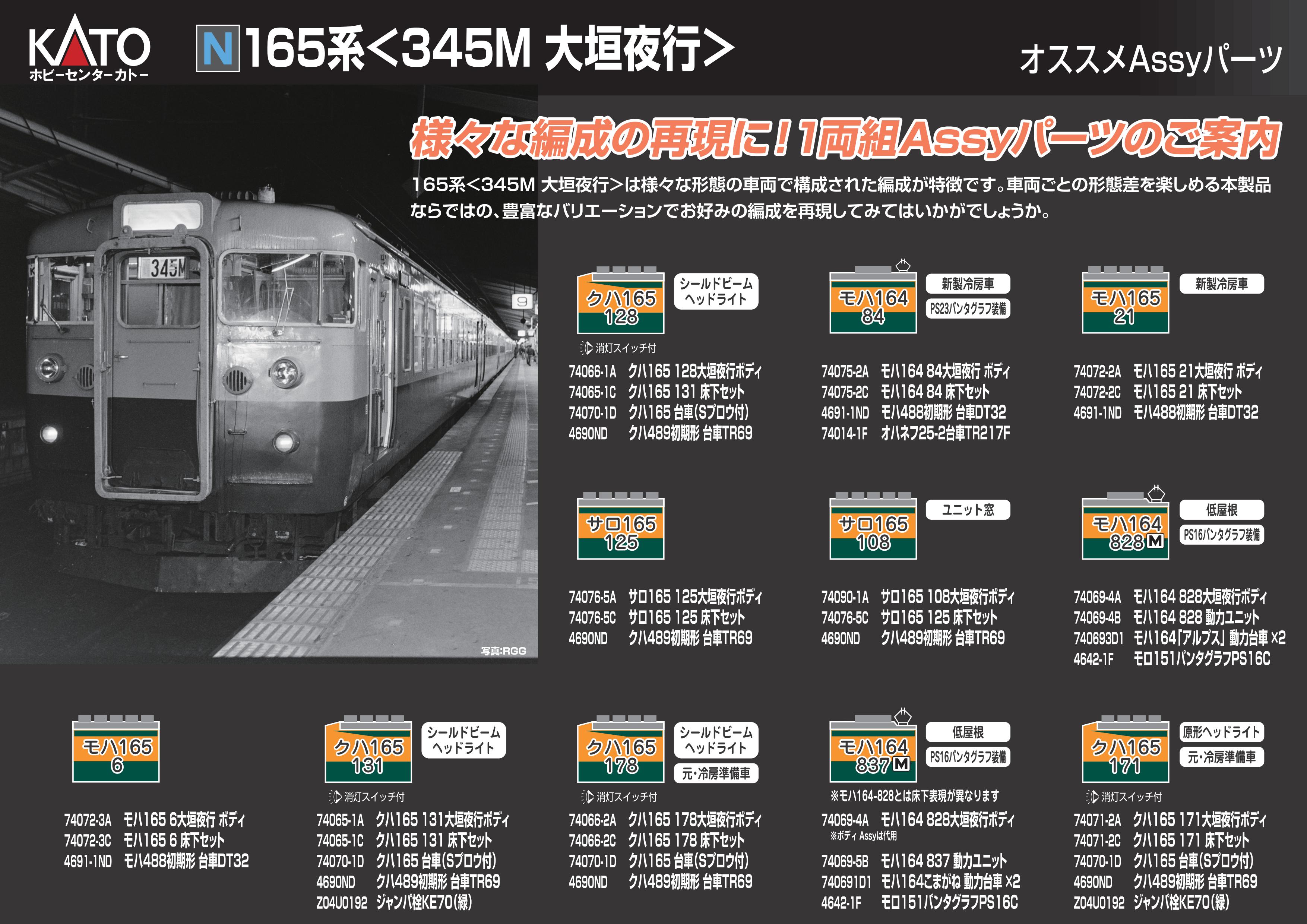 165系シリーズに「シールドビーム車」登場!これまでの165系シリーズでは、いわゆる「デカ目」の先頭車をラインナップしておりましたが、 今回は目の小さい「シールドビーム」を新たに製品化! ASSYパーツを活用して1両組を作製しませんか? |